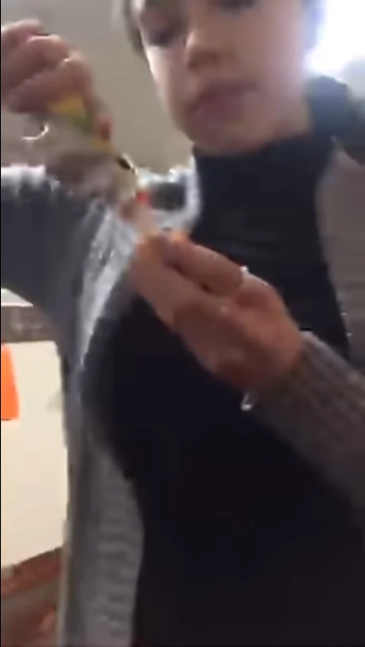Попытка отобрать еду у Алины. Алина трагически: "У бедного ребенка отбирают еду".