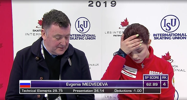 Реакция Медведевой на неудачный прокат в Канаде: полная растерянность, кусает губы, ладонь у лба