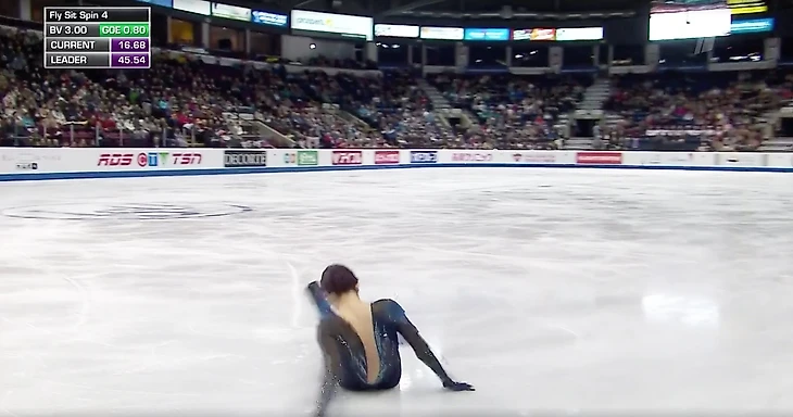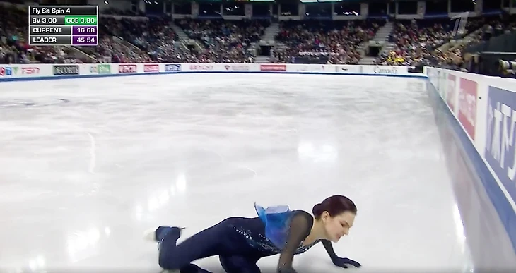 Двукратная чемпионка мира Евгения Медведева сорвала короткую программу на Skate Canada: степ-аут на двойном акселе, падение на тройном лутце. Это 62,89 балла, 6-е место и крайне низкие шансы отыграться в произвольной.