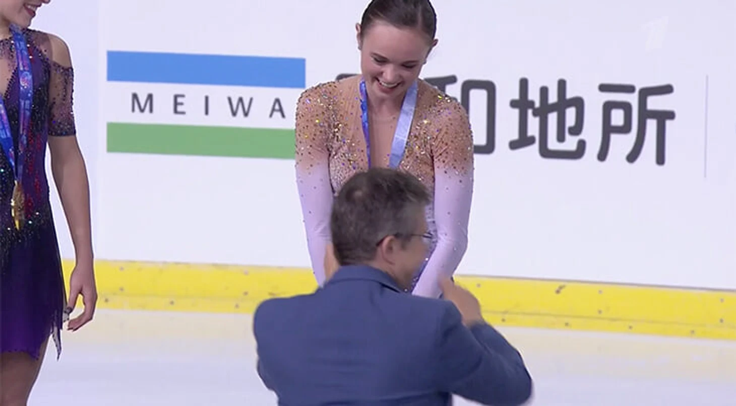 Хохот на пьедестале: медали перепутали, Белл и Косторная устроили мини-сцену с награждением