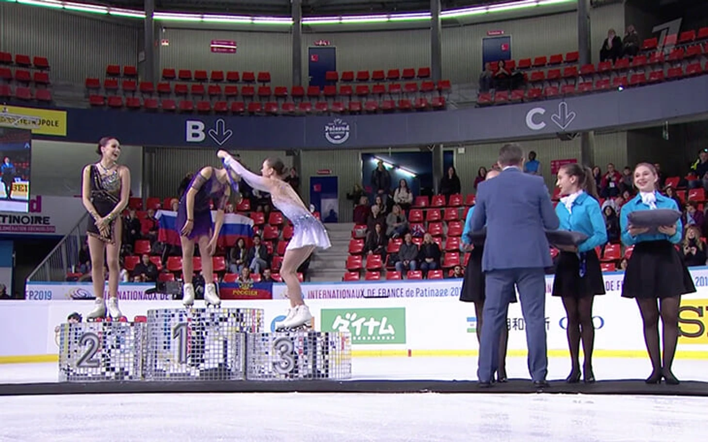На награждении женщин после Гран-при Франции было весело – все случайно спровоцировал глава метрополии Гренобля Кристоф Феррари, вручавший медали.