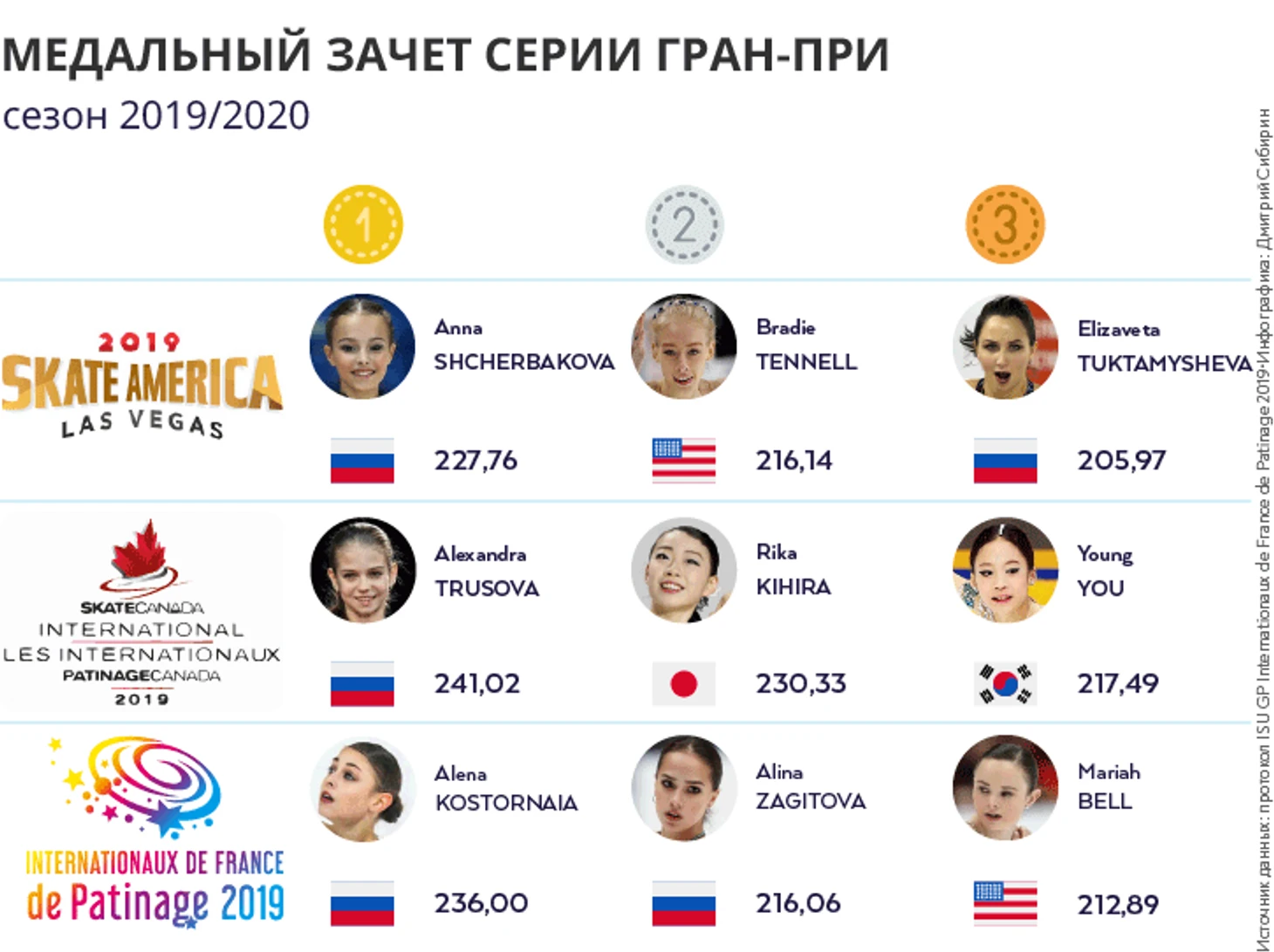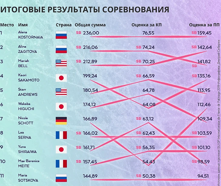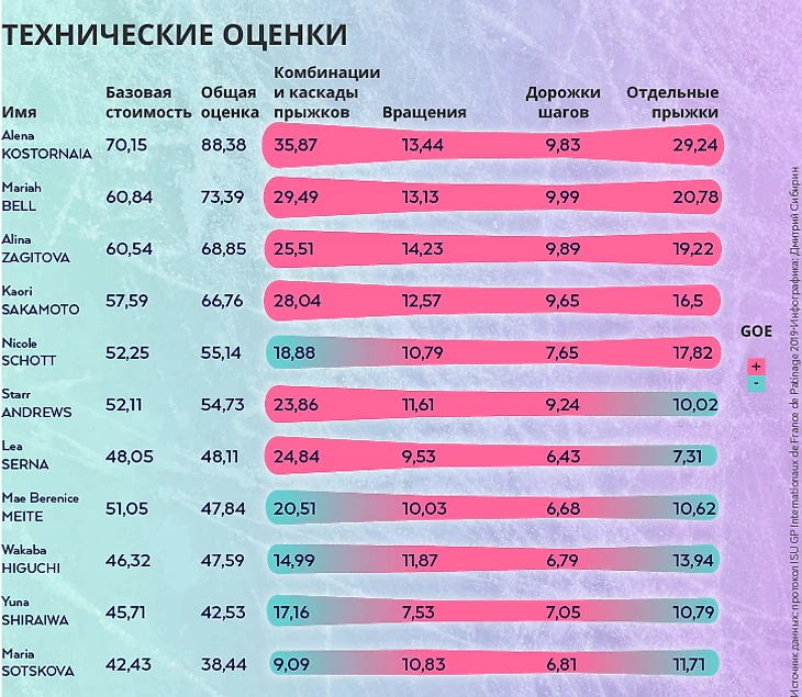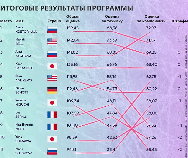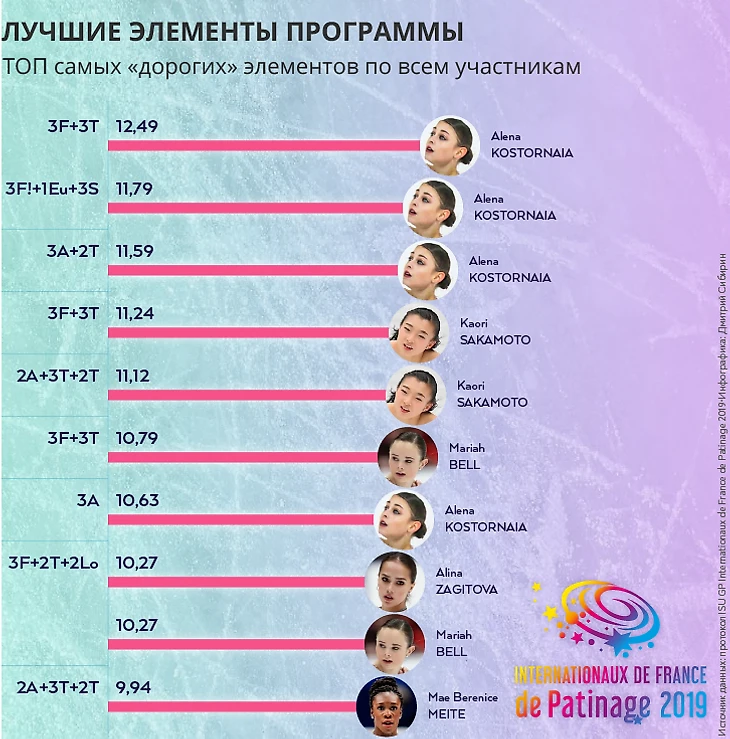 Гран-при Франции в цифрах: у Загитовой лучшие компоненты, Косторная – с самым дорогим элементом
