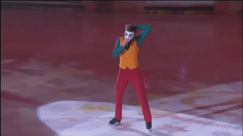 Когда я прочитала, что реально Мари-Франс поставила ему Рокетмена, потому что никому из ее танцоров эта музыка не подошла…в голове вертелась только одна фраза «Ну просто убицца головой о веник как для чемпиона расстарались».