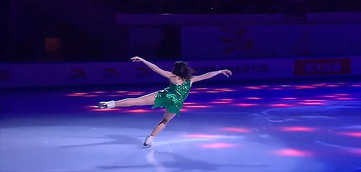 Лиза вышла на лед в открытом, ярко-зеленом платье с блестками/пайетками: это, конечно, далеко от прошлогоднего экстрима с раздеванием до лифа, но тоже откровенно. Наряд с асимметрией и с концептом: на левом берде – глубокий разрез, на спине слева – вырез.