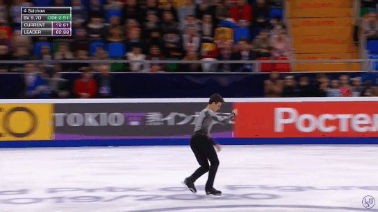 Тот же автор второго каскада 4Л+3Т, исполненного в короткой программе не втором месте по "плюсам" (39).