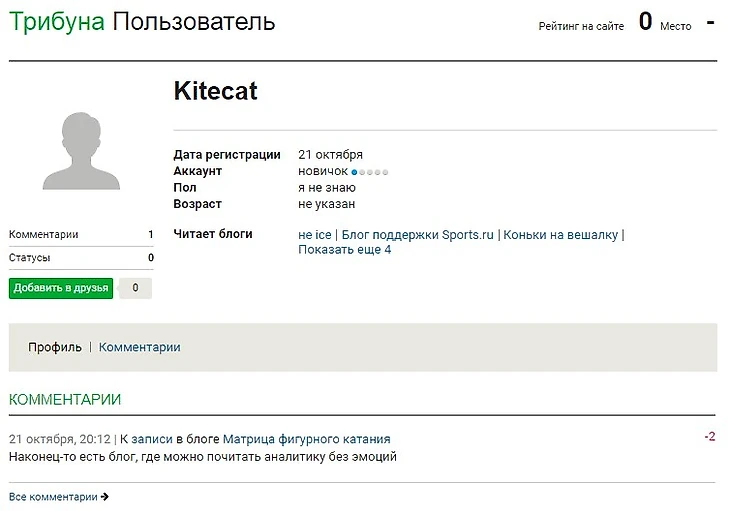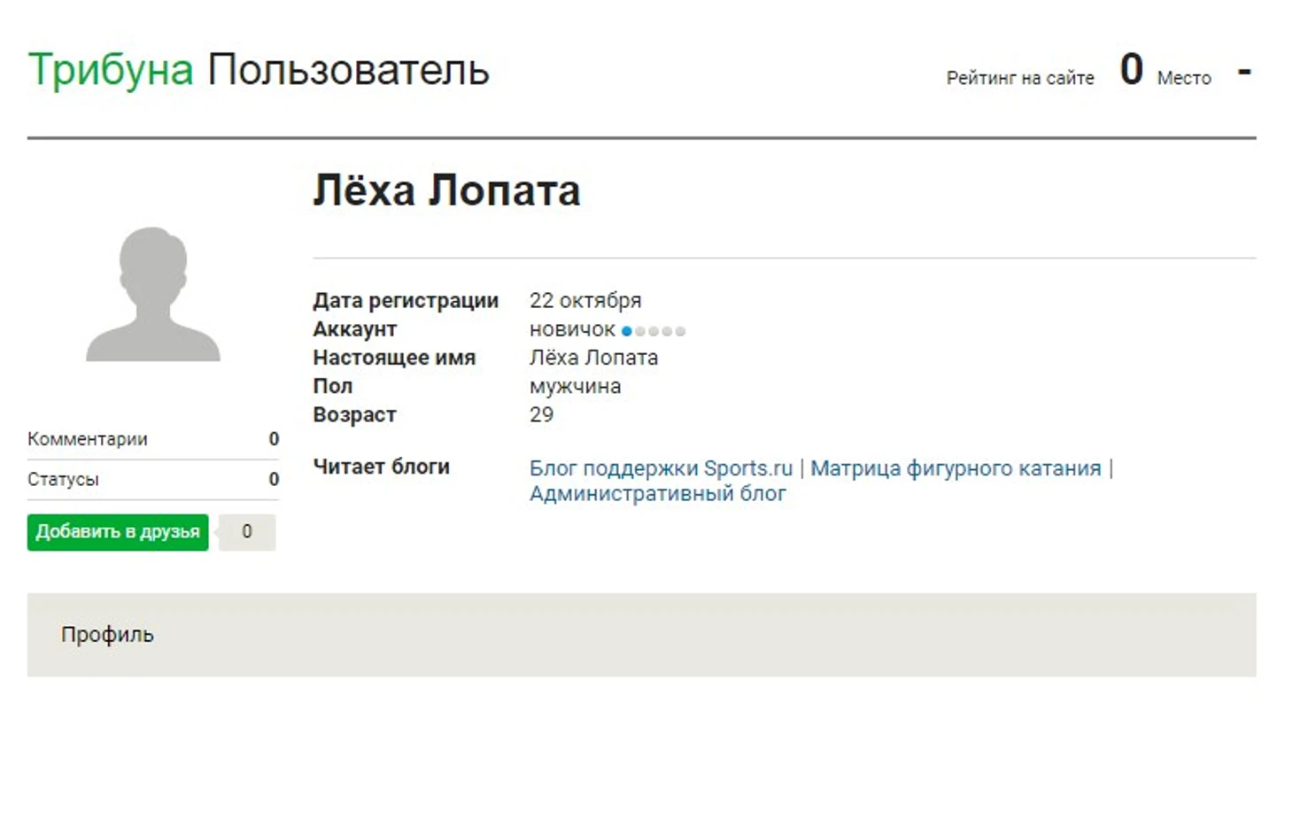Ну ладно, подумал, Лёха, видимо, человек занятой, успел только зарегистрироваться на Спортсе и подписаться на самый Честный блог о фигурном катании. А может просто ленивый.