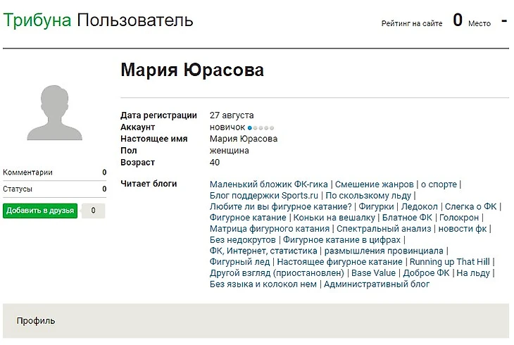 31 пустой профиль и 4 с одним или чуть более комментариями только в записях блога "Матрица фигурного катания".