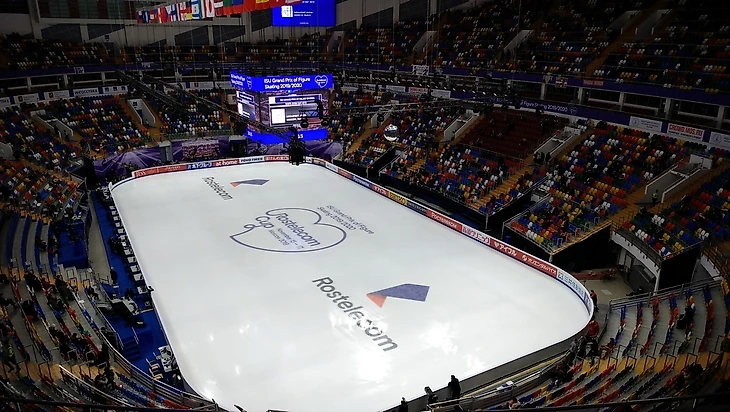 Итак, я приготовился снимать. По крайней мере начать этот день с Мориса Квителашвили, который свою короткую программу откатал не слишком удачно. И только я начал снимать видео на телефон, ко мне подошла девушка-смотритель и попросила этого не делать. Да, объявляли, что видеосъёмка и фотосъёмка со вспышкой запрещена. Но видеосъёмка-то чем спортсмену может помешать, если она и так делается без вспышки? Чьи права я нарушаю или чей хлеб я отбираю, тем более когда сижу почти под потолком Мегаспорта? Неужто погрязшего в долгах Первого канала?