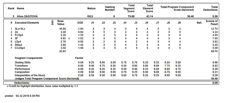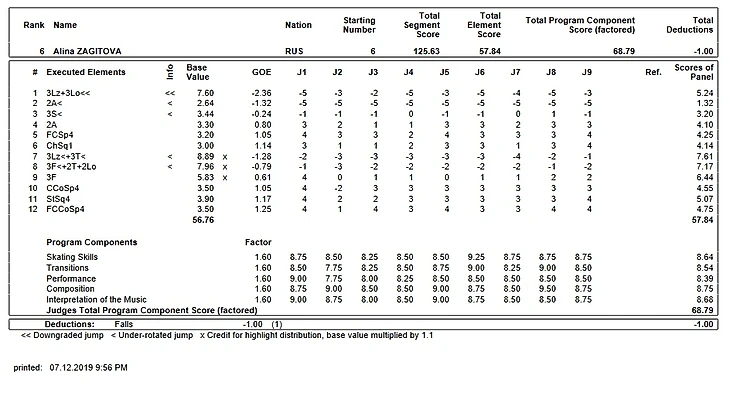 С самого начала сезона со всеми нарисованными недокрутами на прыжках и якобы неправильными ребрами на лутцах, Алине резали оценки на пустом месте и непонятно за что. Это, видимо, так благодарила/наказывала ОКР/федерация собственную олимпийскую чемпионку за: золото олимпийских игр - 2018, золото ФГП/ЧР/ЧЕ-2018, золото ЧМ - 2019 и золото ЮФГП/ЮЧМ - 2017, за 20% доли со всех рекламных контрактов (Пума, Шисейдо, Airweave, Акве Минерале, Сбербанк, Aniplex), со всех призовых, зарубежных и отечественных шоу. Видимо не все еще доказала и все еще не заслужила ничего Алина Загитова в этой прогнившей насквозь системе.