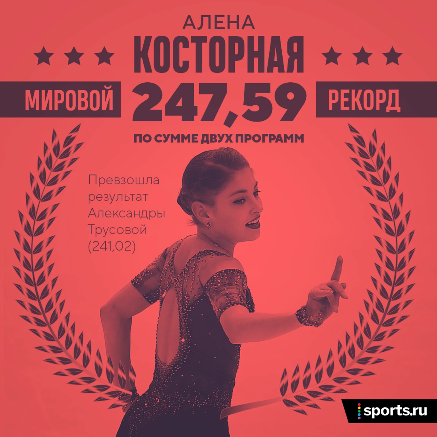 • мировой рекорд Алены Косторной – по сумме программ (247,59) и в короткой (85,45), в который мы верили еще перед гранд-сезоном. Кстати, загляните в комментарии, там не все так очевидно.