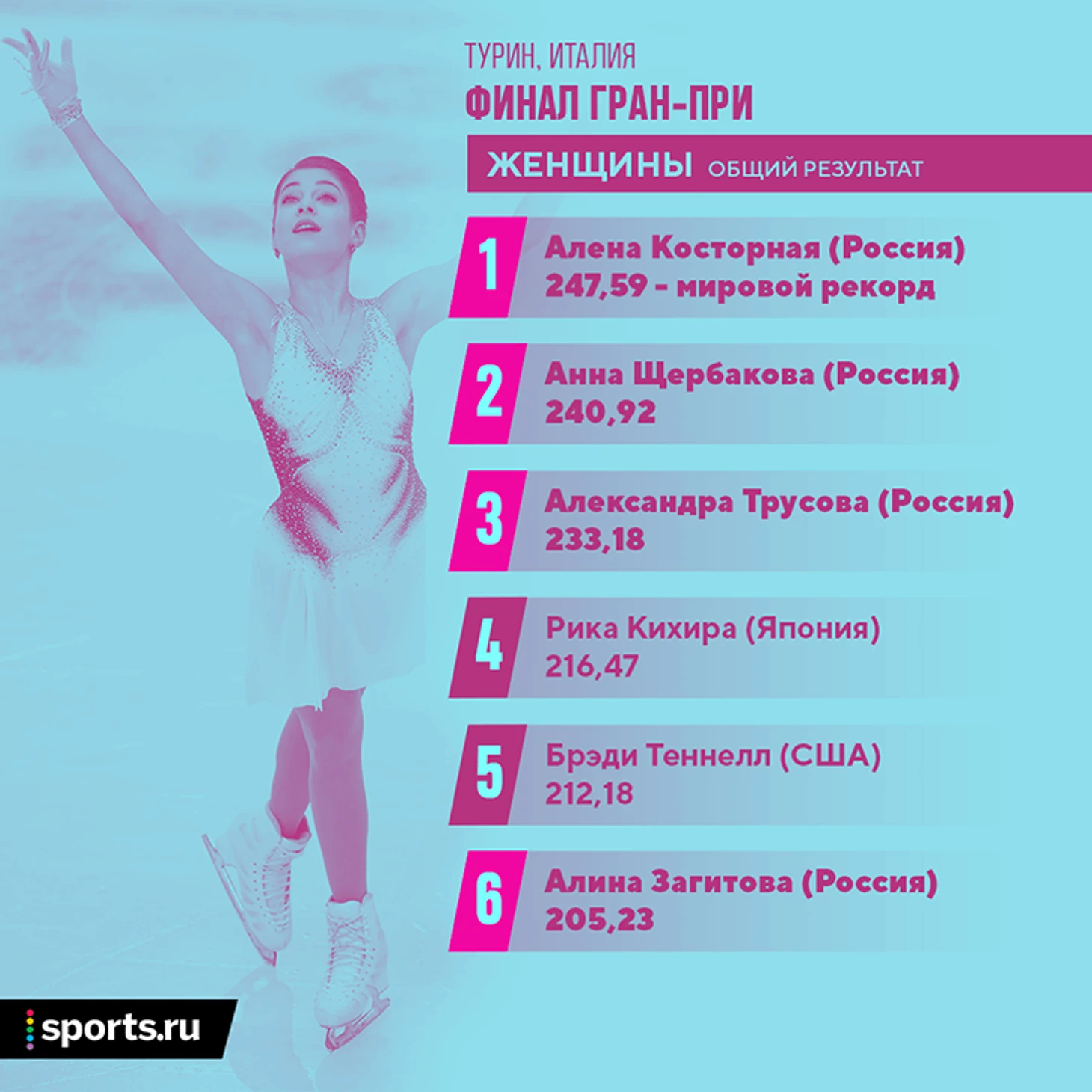 Алена Косторная победила в Финале Гран-при по фигурному катанию, а Анна Щербакова и Александра Трусова завоевали серебро и бронзу.