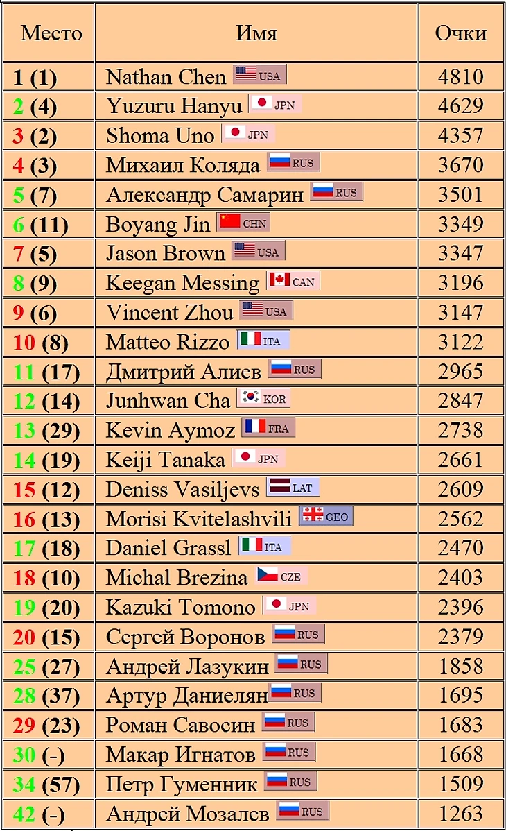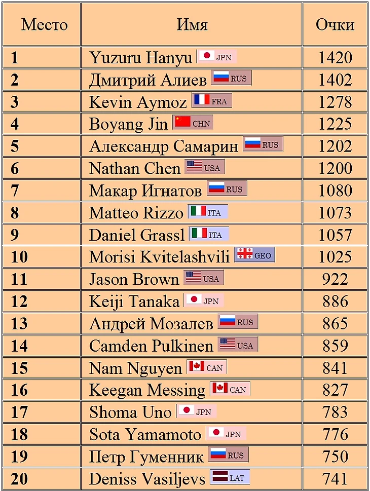 Рейтинг ISU мужчин на текущий сезон 2019/2020