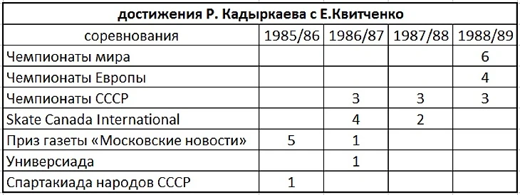 Однако, партнерство Рашида с Мариной Черкасовой не удалось, и Кадыркаев переехал в Ленинград, чтобы составить пару с Еленой Квитченко.