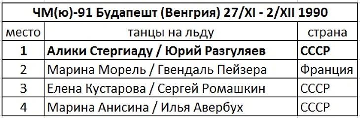 Имеют некоторое отношение к Ташкенту и победители юниорского чемпионата мира 1991 года (проходил с с 27 ноября по 2 декабря 1990 года в Будапеште) в танцах на льду Алики Стергиаду и Юрий Разгуляев.