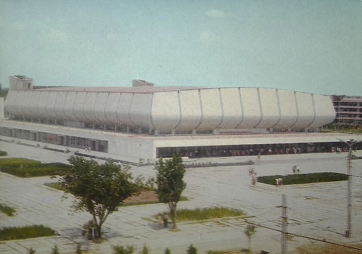 1975 год. Ташкент. Центральный зал спорта «Юбилейный» (открытка изданная Министерством связи СССР в марте 1976 года; фотограф Б. Подгорный)