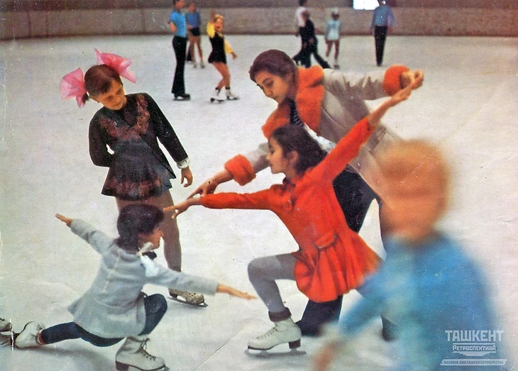 Начало 1980-х годов. Ташкент. ЦЗС «Юбилейный». Юные фигуристы (снимок из иллюстрированного издания о Узбекской ССР, выпущенного московским издательством «Планета» в 1984 году)