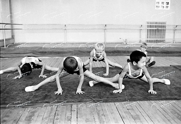 Октябрь 1972 года. Ташкент. ЦЗС «Юбилейный». Детская спортивная школа по фигурному катанию. Занятия «на земле» - юные спортсмены на разминке (Виктор Чернов / Библиотека изображений РИА «Новости»)