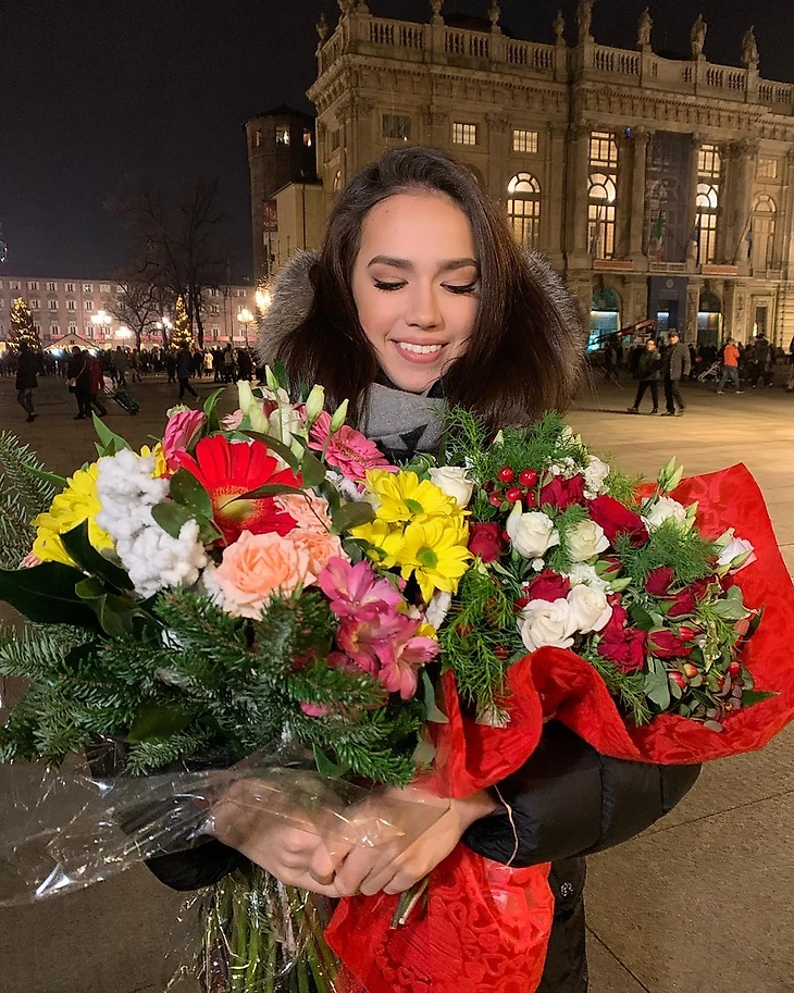 Алину очень красиво встречали в Финале Гран-при в Турине. Болельщицы забрасывали ее сердцами и искали выход спортсменов, чтобы вручить огромный букет цветов. Диктор на арене представлял ее ударно, в четырех предложениях. "Campionessa! Nazionale. Europea. Mondiale e olimpica". Прямо как "впервые на арене...", но более натурально.