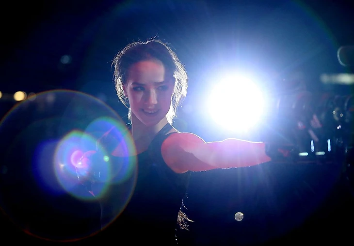 Мне предстояло передать подарок Алине. Проблема заключалась в том, что ее везде сопровождают несколько охранников, а доступа ко льду у меня не было. После нескольких кругов по пресс-центру я одолжила нужную мне проходку ко льду, нашла там человека, который отвел к гримерке Загитовой, находящейся недалеко от раздевалки ЦСКА. Десять минут ожидания у двери в окружении ее охранников, и вот уже Алина перед моими глазами. Миниатюрная и хрупкая. Она была удивлена подарку и спросила, от кого. Сказала, что от ее фанатов. Алина улыбнулась и упорхнула на лед.