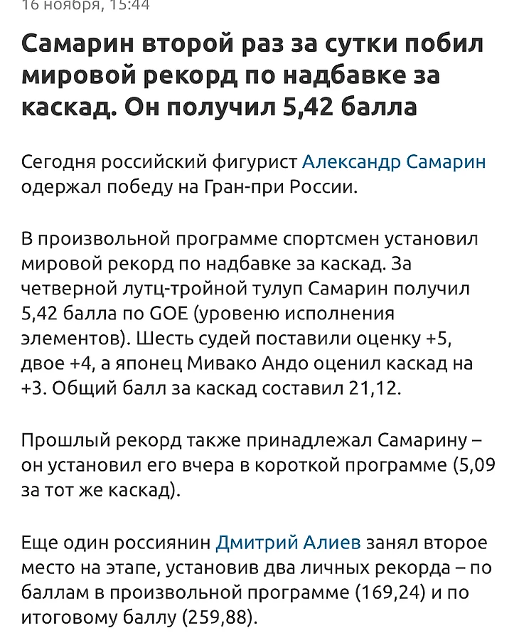 Собственно по тому, что сейчас знает весь мир о методах побед России на той Олимпиаде , эта победа с такими оценками прекрасно встаёт в тот ряд. Не в плане допинга, нет, а в плане того что добыта была неспортивными методами. Но Аделина Сотникова для Капитана = Алена Косторная для Морфеуса, поэтому мы видим следующее https://www.sports.ru/figure-skating/blogs/598983.html?sl=1 Данная статья содержит опусы подобные такому :
