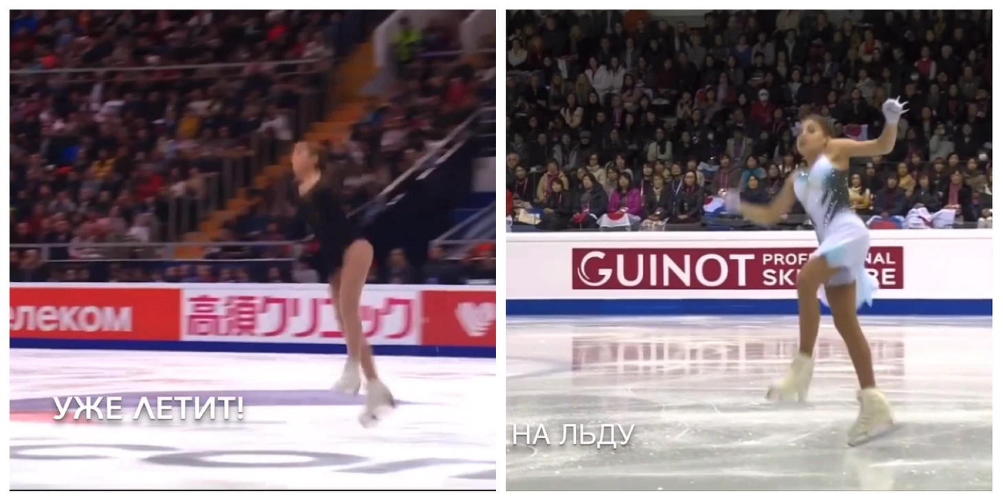 Соответственно мало того что в финале гран при все было не канонически и неидеально, где нас первый раз обманули, так это вероятно («вероятно» ибо мало ли может где то я все же пропустила на каком-то старте, хотя смотрела вроде все) ещё самый лучший вариант из всех возможных для Алёны. И это уже вторая манипуляция . Обычно у неё та же ошибка , может только чуть менее явная, но тот самый «бергер» и то самое poor take off.