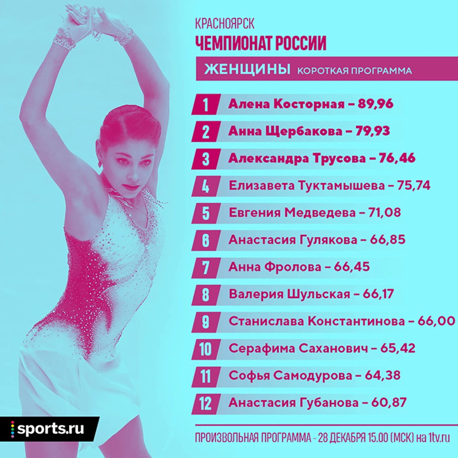 Теперь понятно, что потеря Алины Загитовой стала роковой для чемпионата России по фигурному катанию. Ему отчаянно не хватает фигуристок, которых бы не воспринимали массовкой – с амбициями, историей и возможностями. Алина даже в туринском состоянии точно оживила бы чемпионат, который, похоже, станет самым банальным за последние годы – даже несмотря на солидную плотность в топ-5 после короткой.