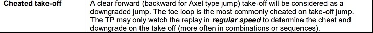 1) Либо дифференциировать правило cheated take-off для прыжков. Применять только для лутца и флипа, а всем остальным разрешить, "раз уж привыкли так",