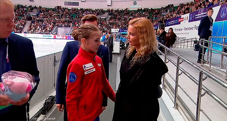 Несколькими минутами ранее Анна Щербакова выдала прокат-космос (181,94 балла) и удержала общее лидерство после выступления Алены Косторной.