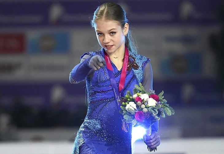Слова Даниила во время показательного выступления Александры Трусовой.