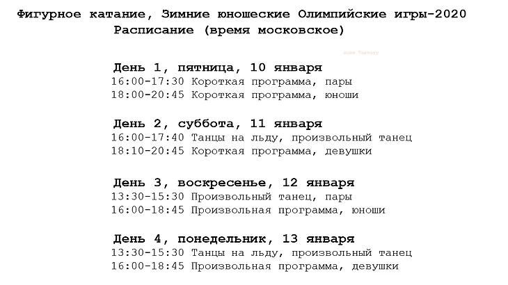 Расписание соревнований по фигурному катанию, Зимние юношеские Олимпийские игры-2020