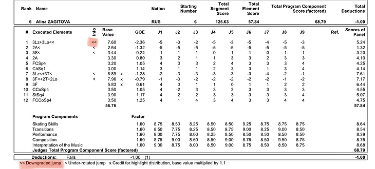По поводу недокрутов - ими страдают многие фигуристки, и Алина не исключение. В том же Гренобле недокруты официально поставили в трикселях Алене, но опять же без ущерба для нее.