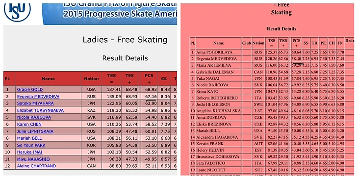 Это был турнир в Братиславе 1-3 октября. Даты этапа Скейт Америка 22-25 октября. Ровно 3 недели, и смотрим на разницу компонентов