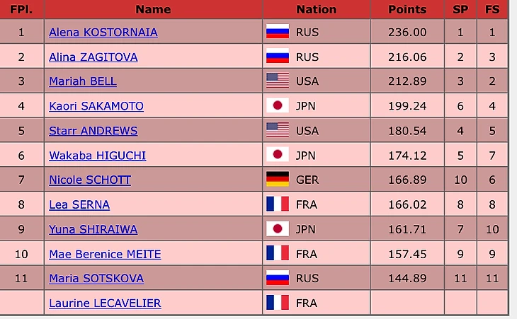 При всем этом даже один из этих факторов в принципе мог стать критичным для Алины, ибо в итоговой разнице по двум программам Мэрайя Белл отстала меньше чем на 4 балла от неё в борьбе за серебро.