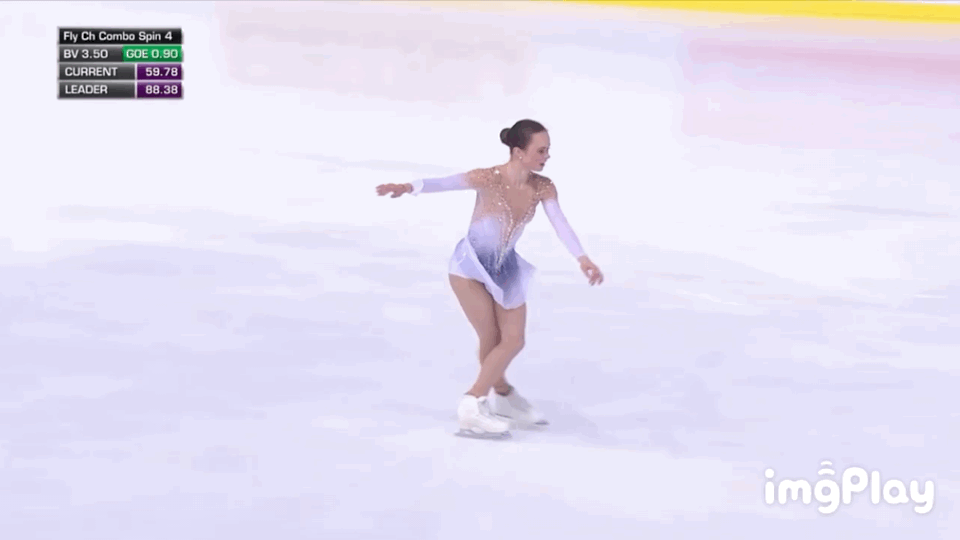 Возвращаемся к Алине и Греноблю - у нас есть возможность сравнить строгость судейства на разных стартах в этом сезоне к олимпийской чемпионке на примере последнего в программе и второго в фирменном каскаде недокрута на риттбергере. Как всегда чтобы избежать любых манипуляций или неверных выводов, давайте сравним этот недокрут с недокрутом на этом же прыжке в финале Гран-при. (Перед этим ещё раз лучше отмотать назад и освежить в памяти недокрут в Гренобле).