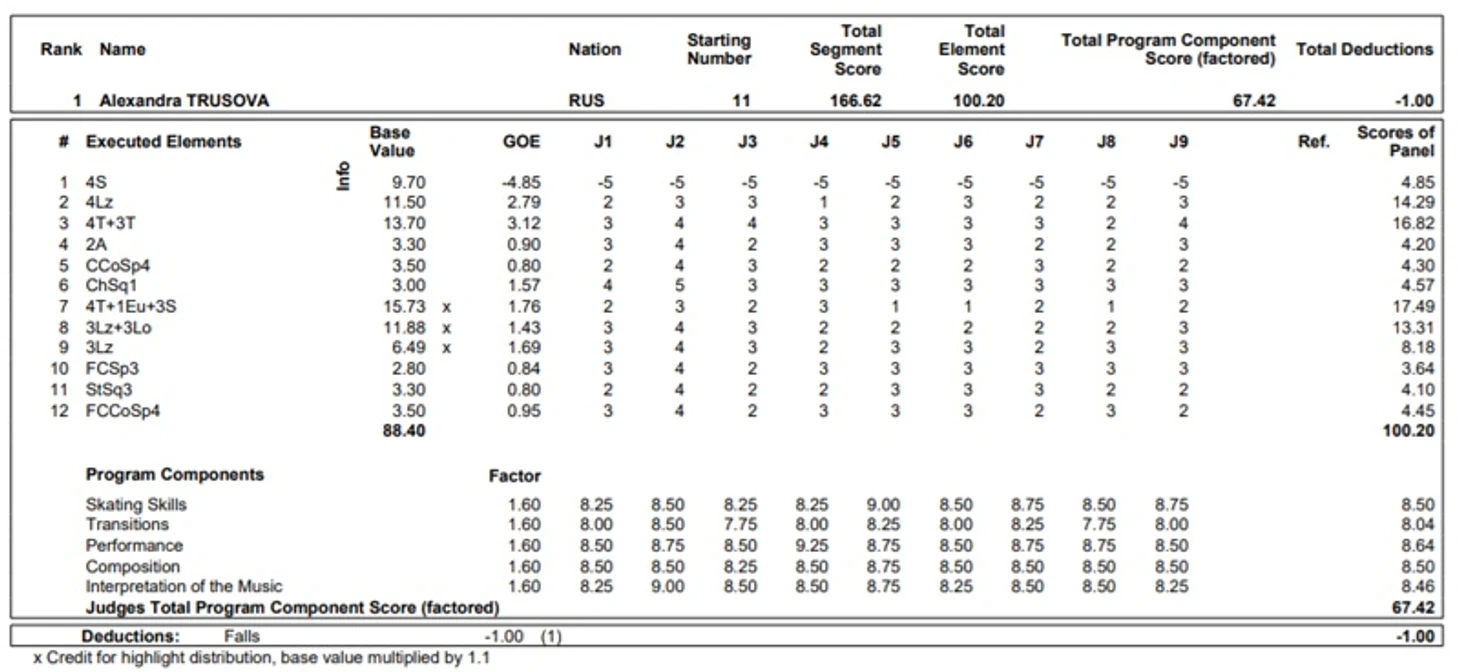 2. Трусова - 241,02 (Гран-При Канады);
