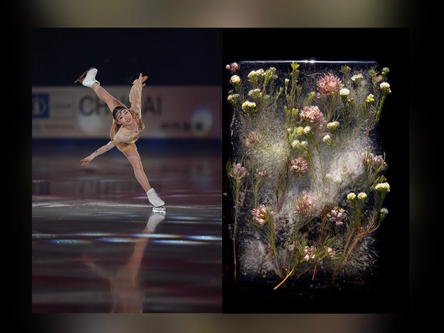 Когда он замораживал цветы, каждая композиция реагировала по-разному. По мере замерзания пузырьки образовывались случайным образом. После нескольких дней экспериментов, Брюс бросил несколько ледяных пластин с замороженными в них цветами в бассейн и был загипнотизирован результатами. При погружении в воду лед треснул и создал совершенно уникальный холст. В процессе замерзания и оттаивания происходили странные и захватывающие вещи, которые придавали снимкам цветов особую фактуру и уникальный стиль.
