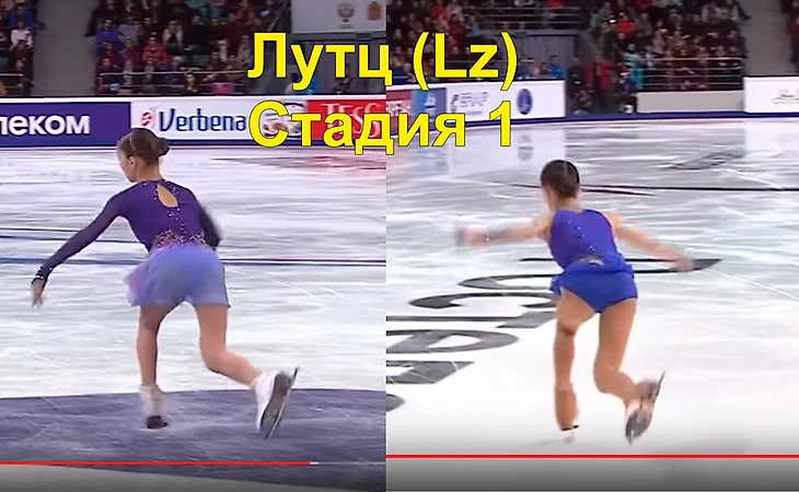 Во-вторых, есть и другое важное обстоятельство: если даже сравнивать «яблоки с яблоками», т.е. именно тройные лутцы Щербаковой и Фроловой, то четко видно различие в уровне качества заходов: у Щербаковой прямо перед прыжком опорная нога рисует на льду полноценную буквы “S” благодаря четко исполняемой перетяжке на ход назад, с переходом с внутреннего ребра на наружное. Прямо перед отрывом Аня Щ., скользя на внешнем ребре, внятно движется по дуговой траектории «назад-влево», после чего в момент удара зубцом толчковой об лёд, она, соответственно, резко меняет направление вращения с «по часовой» на «против часовой», исполняя тем самым «знаковое» для лутца «взрывное» противовращательное отталкивание, по которому лутц, собственно, и отличают от флипа без использования замедленного повтора. Да, непосредственно в момент удара, у нее нередко (хотя и далеко не всегда) бывает неясное ребро (особенно, на четверном, что практически неизбежно, если делать предокрут, а без предокрута, будучи женщиной, квад не прыгнуть). Но зато несколько мгновений до take-off она внятно и заметно идёт по правильной дуге (на правильном внешнем ребре) с чётким моментом вращения, противоположным тому, которое она возьмёт на мговение позже при отталкивании в сам прыжок. При этом у ее тёзки, Ани Фроловой, исполнение этой предпрыжковой перетяжки не настолько внятное: она тоже, формально говоря, меняет ребро с внутреннего на внешнее, но делает это буквально на одно мгновение, не успевая, в отличие от Ани Щ., четко обозначить движение по траектории «назад-влево»; и поэтому у Ани Ф. визуального эффекта резкой смены направления вращения с «по часовой» на «против часовой» на take-off не возникает. Другими словами, можно упрощенно сказать, что Аня Щ. умело «комуфлирует» свое неясное ребро, возникающее у нее порой в момент отталкивания, с помощью правильной и внятно исполненной перетяжки на заходе, а Аня Ф. этого в такой степени не делает: после смены ребра прямо перед прыжком у нее совсем крохотная дуга на внешнем ребре, на котором она не успевает толком поскользить, чтобы визуально создать ключевой для лутца «противовращательный» эффект на take-off. Так что неудивительно, что судьи с бОльшей уверенностью и более часто могут ставить ей значок (!) на 3Lz.