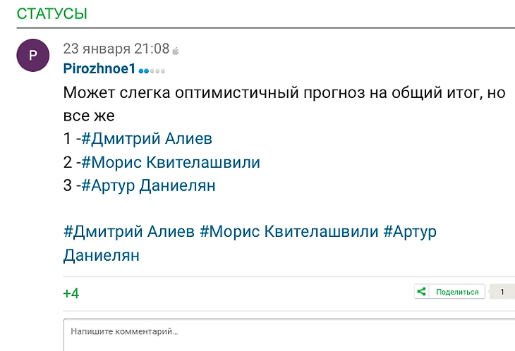 Я надеюсь и Дима, и Артур, поедут на чемпионат мира без всяких закулисных интриг, и уже не будут «бедными родственниками» по компонентам, оценкам недокрутов и гое.