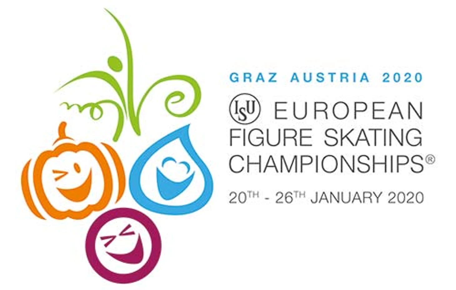 Сегодняшние символы чемпионата Европы по фигурному катанию- смайлики, по мнению автора рисунка, олицетворяют особенности природы австрийского Граца: виноградинку, тыкву и капельку (росы или молока).