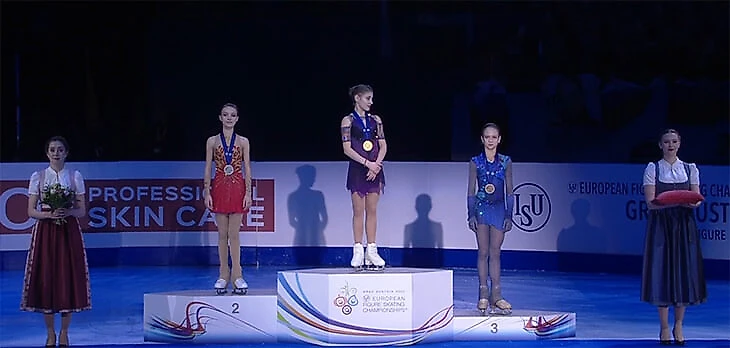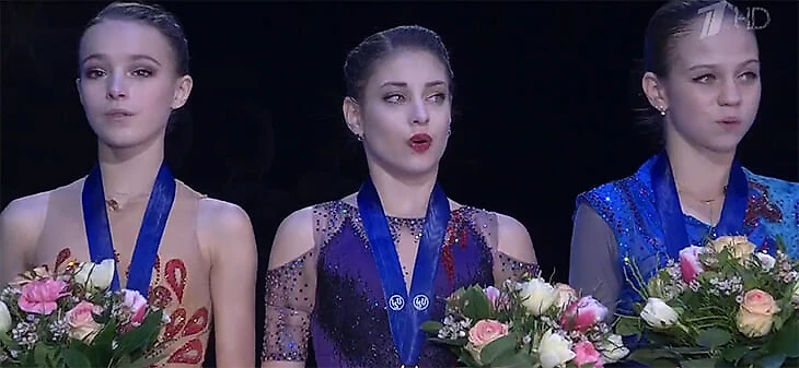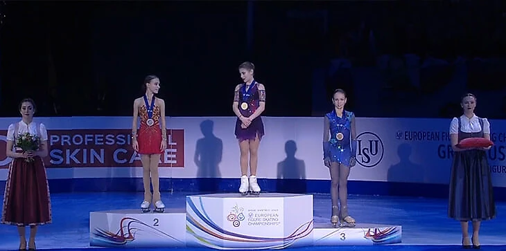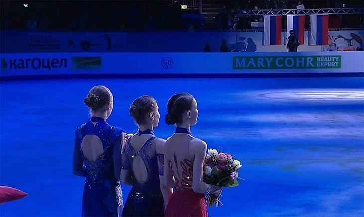 Роскошный финал чемпионата Европы в Граце: три лучшие фигуристки мира – Алена Косторная, Анна Щербакова и Александра Трусова – исполнили гимн России, стоя на верхней ступени пьедестала.
