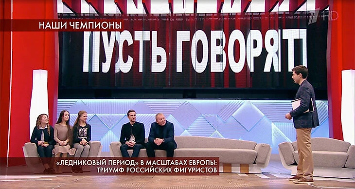 Первый канал показал специальный выпуск «Пусть говорят» с Дмитрием Борисовым – «Ледниковый период в масштабах Европы: триумф российских фигуристов».