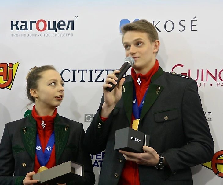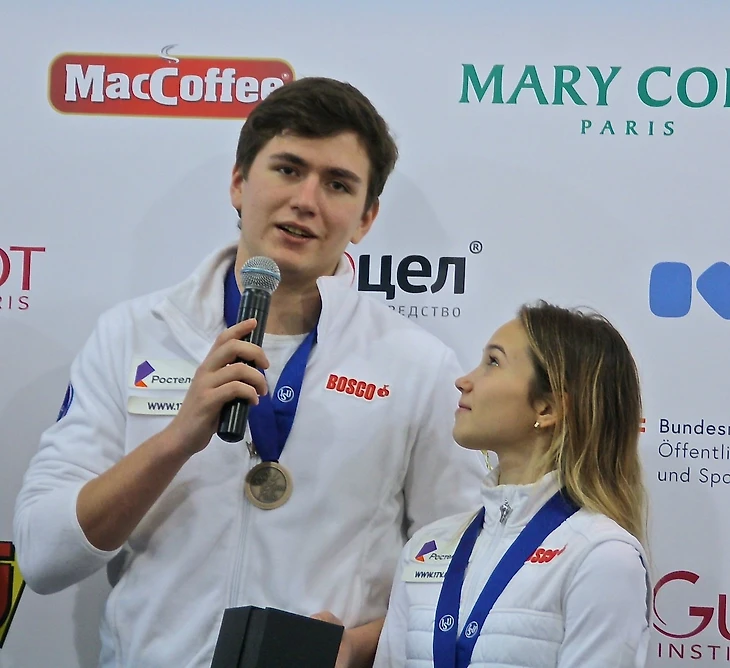 Посещение турниров всегда интересно возможностью увидеть спортсменов вблизи и пообщаться с ними в неформальной обстановке. В субботу мне удалось постоять в первых рядах на неформальной церемонии награждения пар малыми медалями за произвольную программу. Наблюдать за спортсменами очень увлекательно.