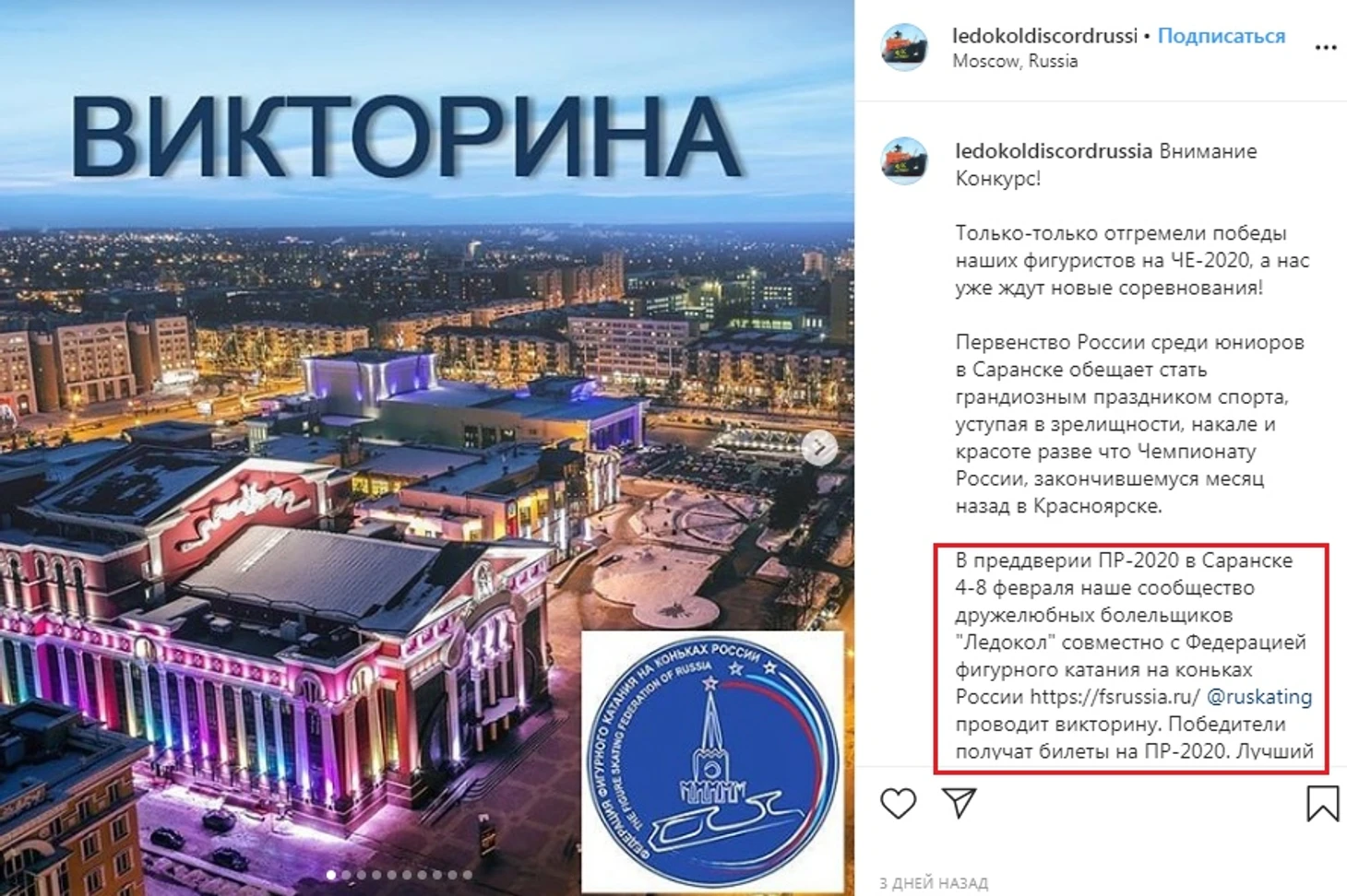 А она получается сотрудничает с откровенными хейт-блогами? Вот здесь авторы блога заявляют о том, что проводят конкурс и розыгрыш билетов на Первенство страны в Саранске (с оплаченным проживанием!) совместно с федерацией фигурного катания России.