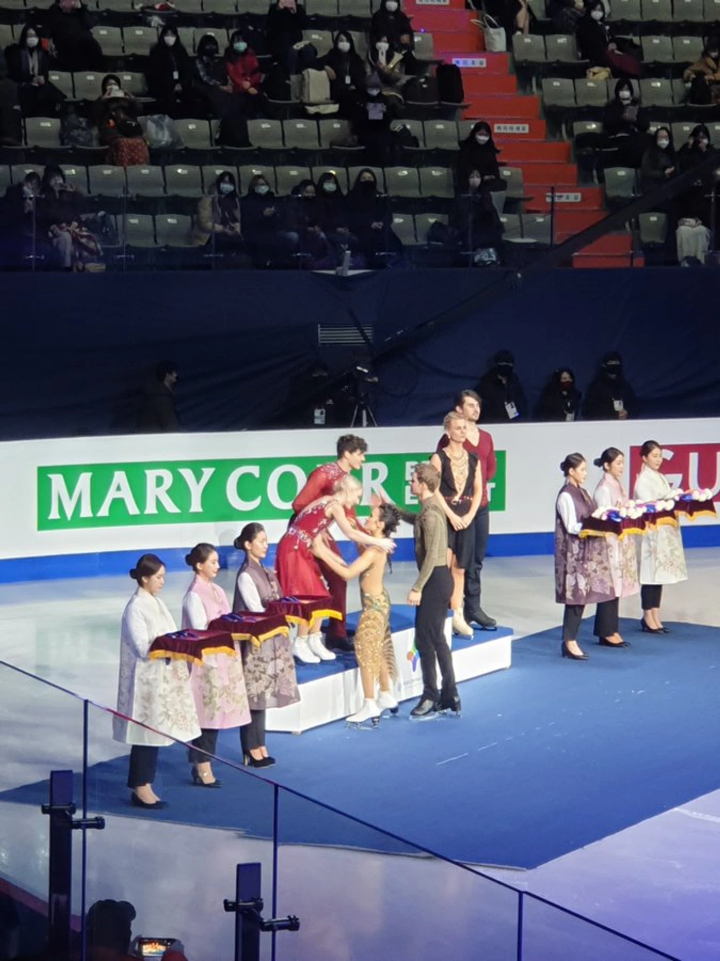Страдания по поиску билетов я наблюдала в твиттере и на Планете вплоть до начала соревок и, к сожалению, китайским фанам перекрыли кислород-они просто не смогли улететь из Китая, так как закрыли границы округов. И сдать билеты они тоже уже не могли :(. Но все равно каток был достаточно заполнен.