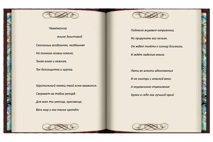 Отныне стихотворение ЧЕМПИОНКА будет печататься с посвящением АЛИНЕ ЗАГИТОВОЙ!