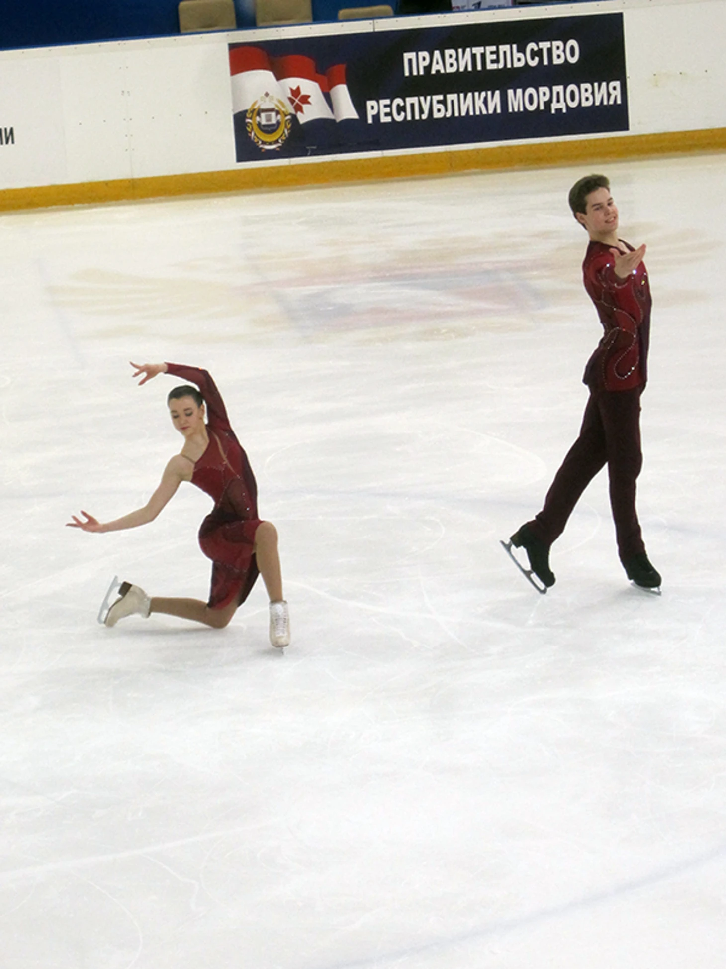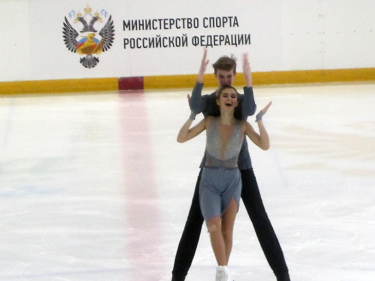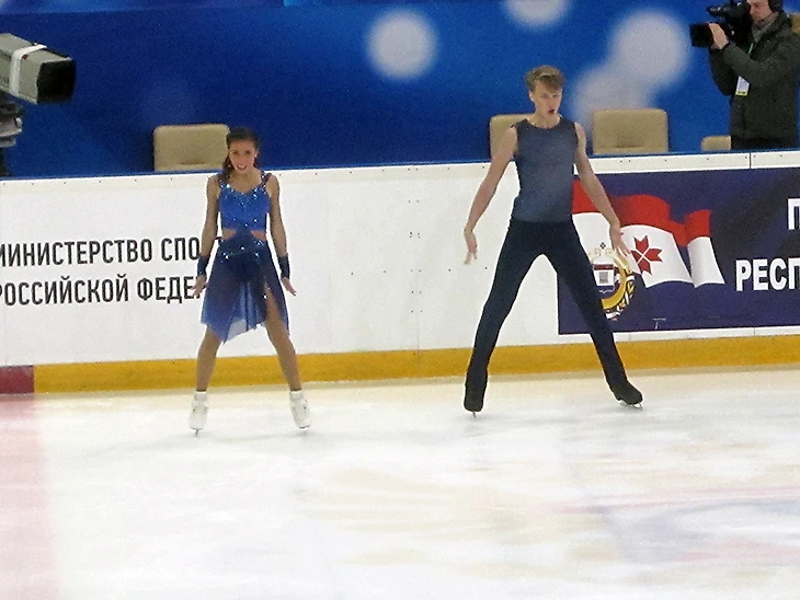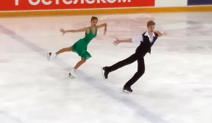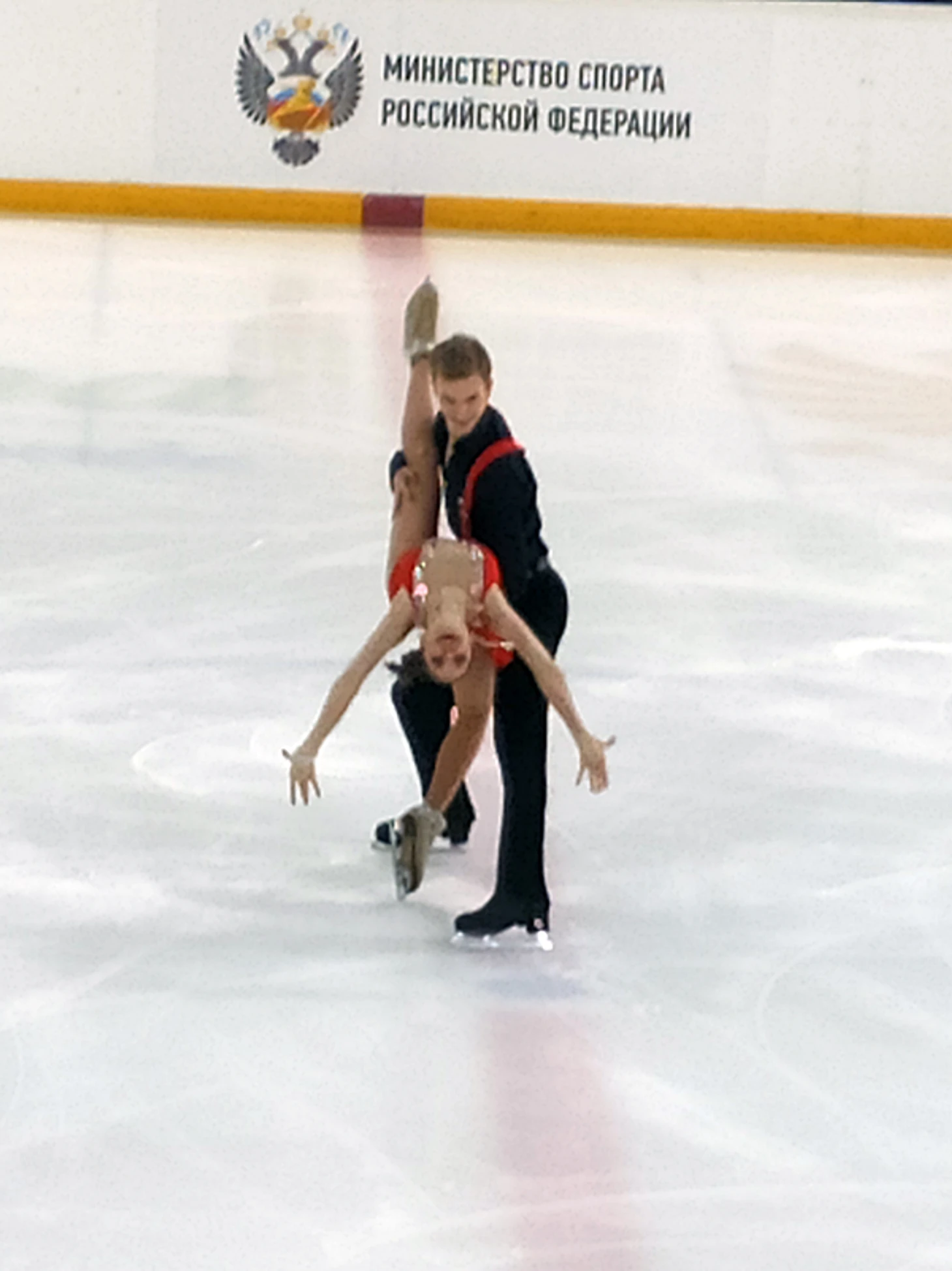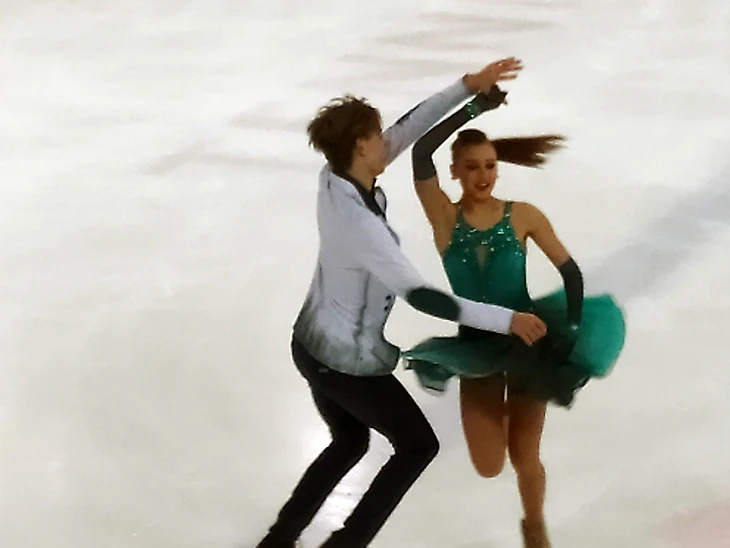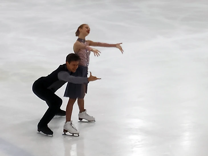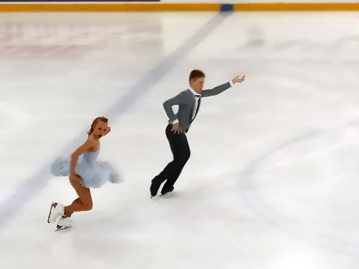 Арина Ушакова – Максим Некрасов. В КП зажигали под «Чикаго». Бросается в глаза скорость пары. Мне не понравились сутулость и руки-грабельки у партнёрши, но девушка она артистичная, а у партнёра очень хороший конёк.