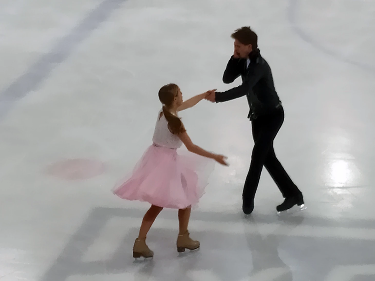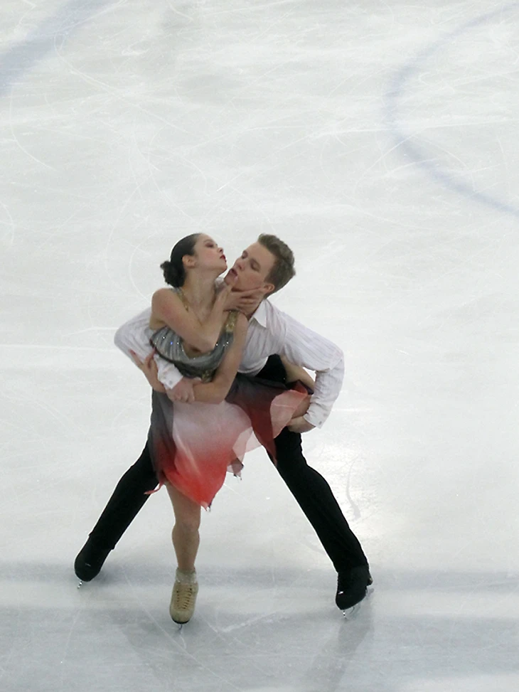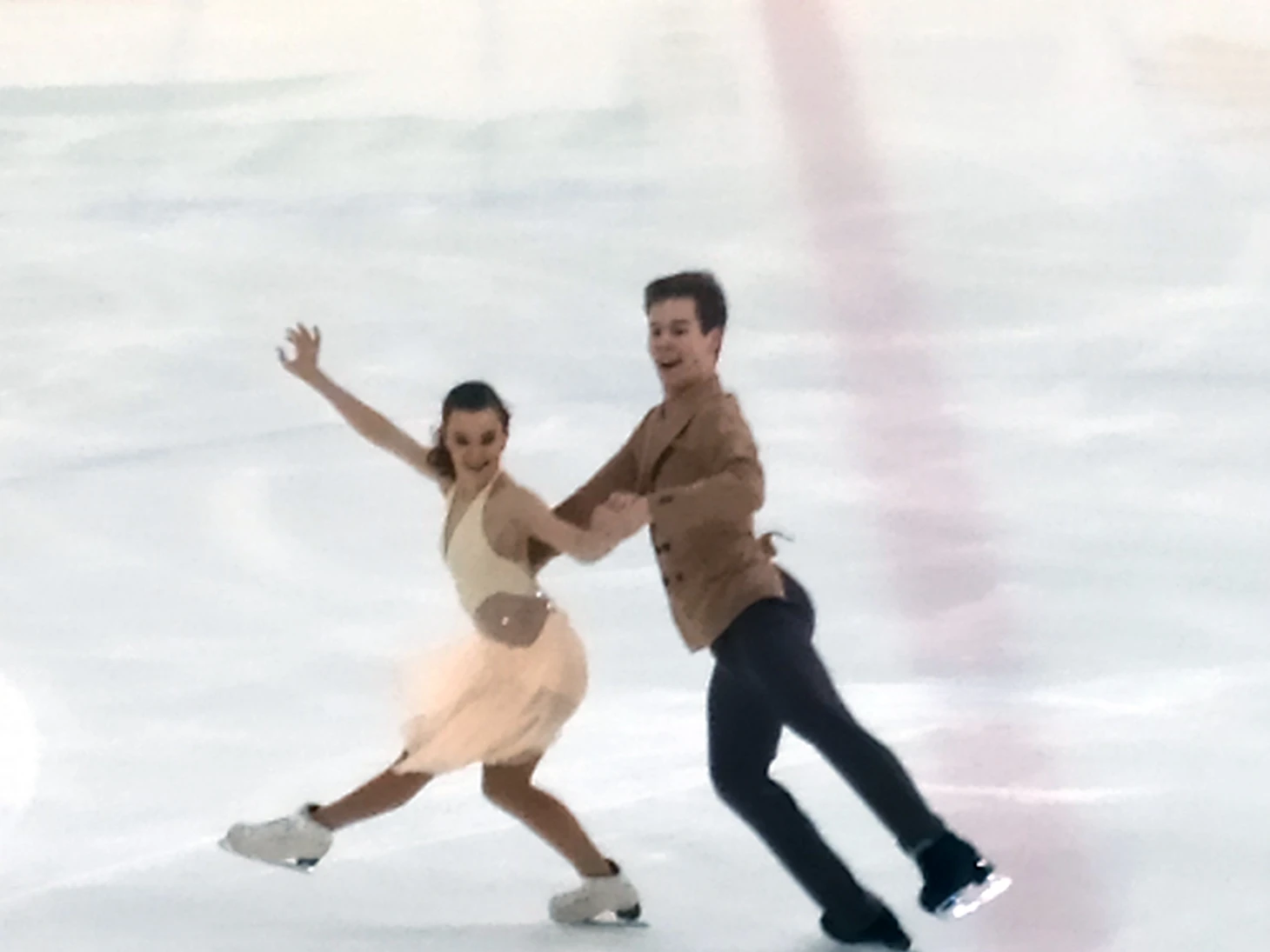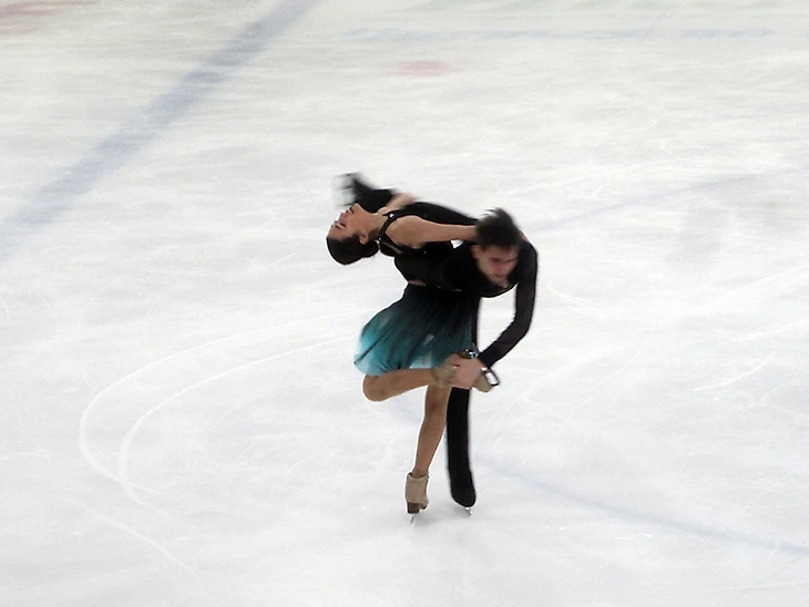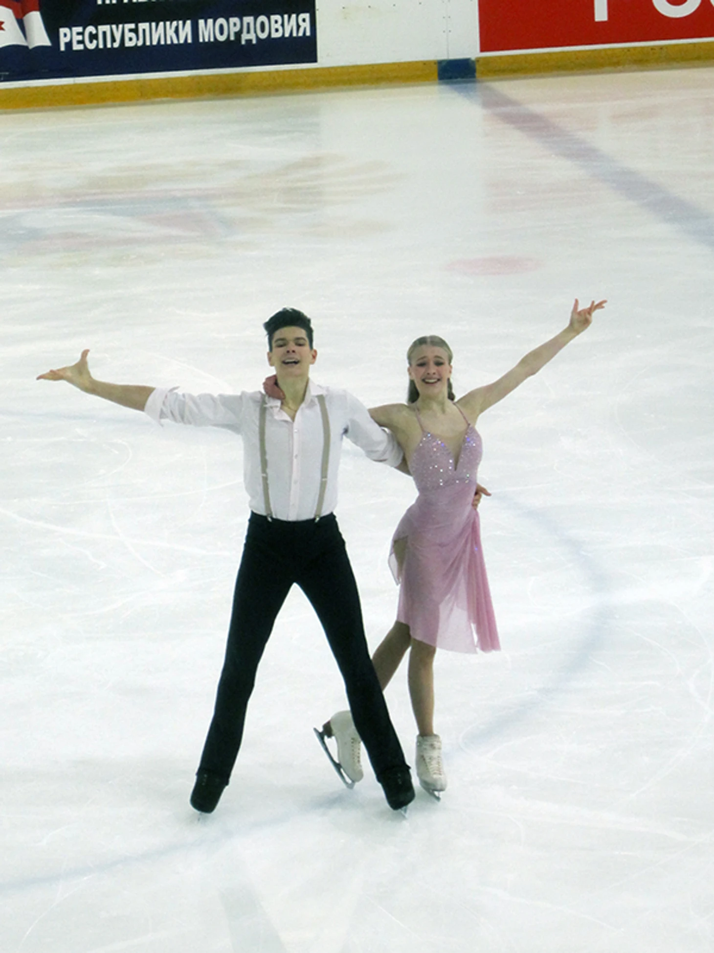 Арина Ушакова – Максим Некрасов. В КП зажигали под «Чикаго». Бросается в глаза скорость пары. Мне не понравились сутулость и руки-грабельки у партнёрши, но девушка она артистичная, а у партнёра очень хороший конёк.