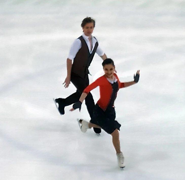 В ПП взяли мелодию Рихтера из «Остатков» известную тем, что под неё Алёна Косторная катает своего «Ангела». Тренируются ребята у Жулина, и, знаете ли, мне начало программы напомнило «Слепую» Кати Бобровой. В целом, ребятам лирика удалась, но вот музыкальная склейка напоминала заедающую пластинку.