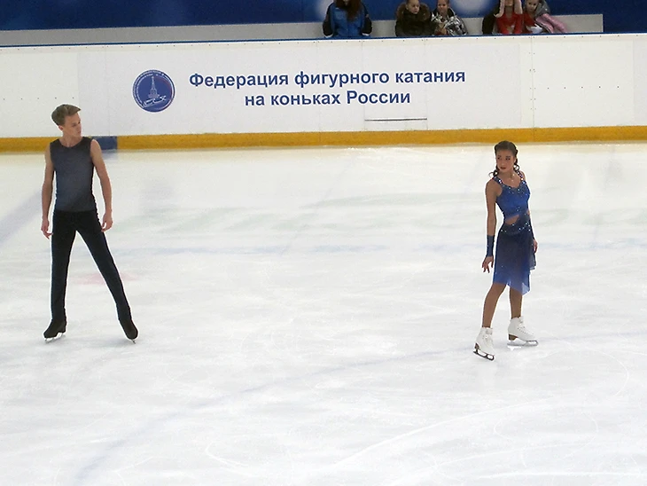 Ангелина Зимина – Александр Гнедин. В КП решили сиять под «Бриолин». Ребята катались на невысокой скорости и по-ученически, хотя партнёр пытался быть роковым парнем, и даже свою юную партнёршу за попу хватал, вот только на твизлах кое-как устоял.
