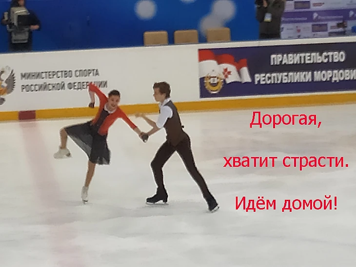 ПП этой пары я видела на ЮГП, и что-то им не на руку моё присутствие(( В Челябинске они упали с вращения, в Саранске же партнёрша упала на дорожке, исполняя твизл. Да и в целом прокат получился тяжёлым.